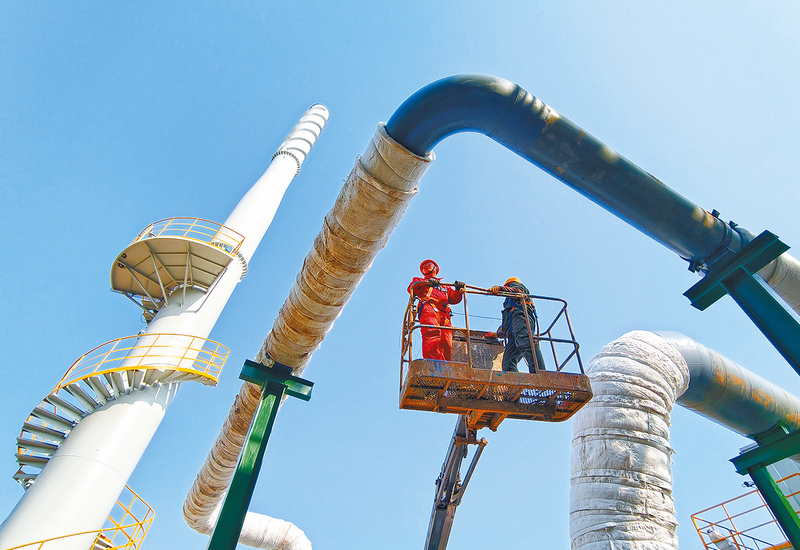 中原大化为彻底解决长期困扰煤化工装置安全稳定高负荷运行的各类排放问题,实施了煤化工装置VOCs综合治理技术改造项目。据了解,项目投用后,VOCs气体将被集中送至RTO设备集中燃烧彻底处理,既能达到环保排放标准,又可为煤化工装置安稳长周期运行提供保障。目前,蓄热式RTO尾气处理系统施工已进入收尾调试阶段。图为11月13日,中原大化施工人员开展改造项目相关管线的保温作业。 吕标伦 摄