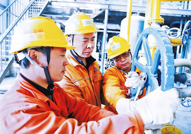 ▲安阳园区结合当前生产任务重点,坚持“把隐患当事故对待、把苗头当事故处理、把问题当事故追究”的高压态势,从严、从细、从实开展生产现场隐患排查工作,为安全生产平稳运行奠定坚实基础。图为12月3日,该园区职工在对空分车间控制阀进行检查维护。 王晓军 摄